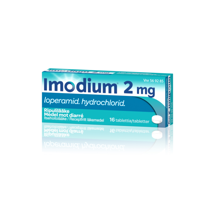 Sen vaikuttava aine on loperamidi, joka vaikuttaa ruoansulatuskanavan seinämän lihaksistoon ja hidastaa suoliston liikkeitä. Näin ulostamiskertojen määrä vähenee. Imodium-tabletit on tarkoitettu äkillisen ja tilapäisen ripulin hoitoon. Alle 12-vuotiaille ja pitkäaikaiseen käyttöön vain lääkärin määräyksestä.