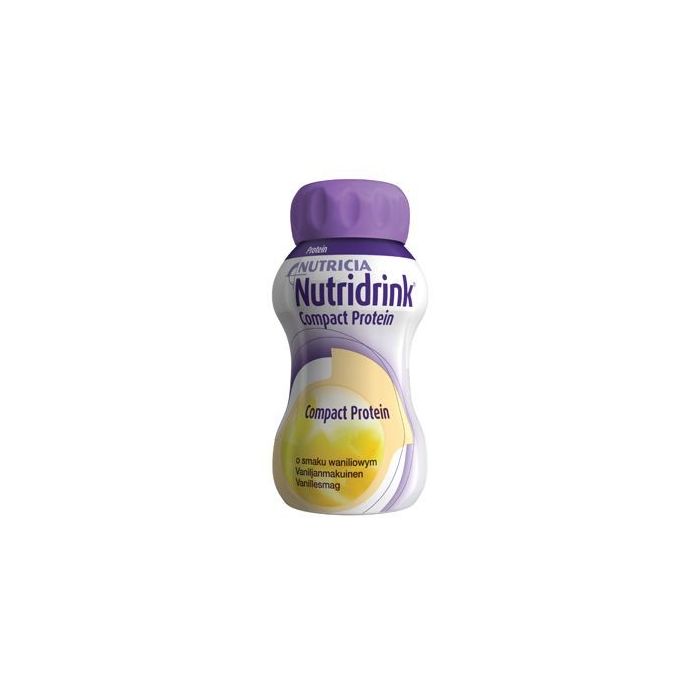 Kliininen ravintovalmiste sairauteen liittyvän vajaaravitsemuksen ruokavaliohoitoon. Nutridrink Compact Protein on runsaasti proteiinia ja energiaa sisältävä, tiivistetymmässä muodossa oleva pirtelömäinen täydennysravintojuoma. Gluteeniton ja vähälaktoosinen (<0,35 g/100 ml).